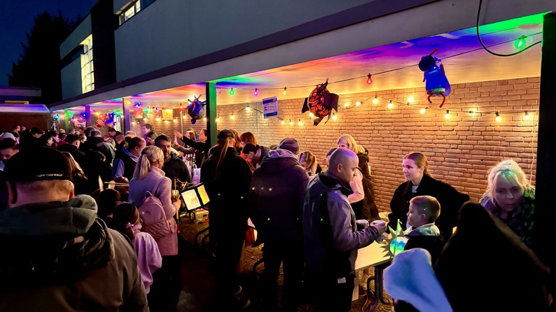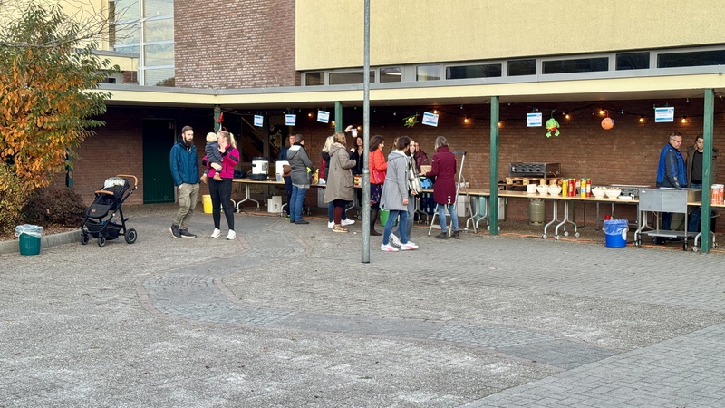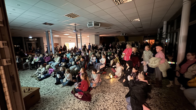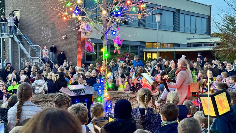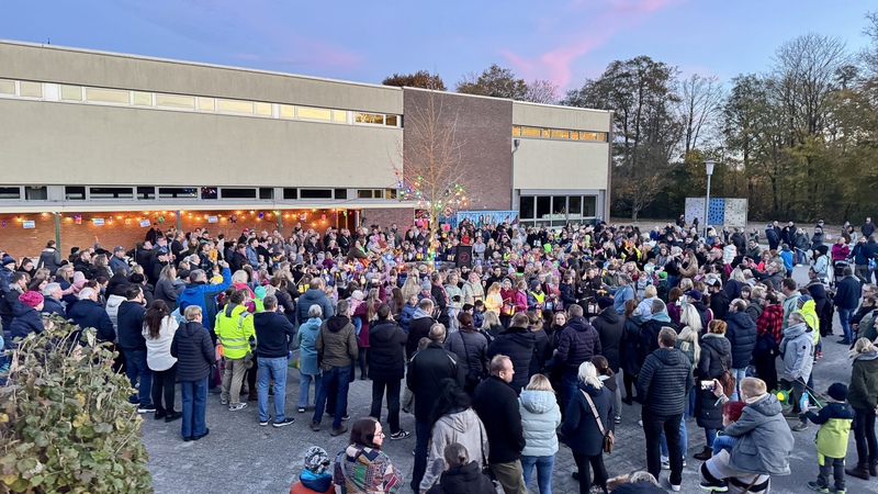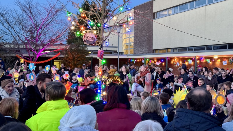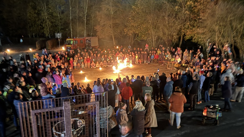 Am Donnerstag, den 6. November, fand wieder unser Laternenfest statt. Viele Kinder, Eltern und Großeltern waren unserer Einladung gefolgt und genossen zusammen das Fest. In stimmungsvoller Atmosphäre wurden gemeinsam Lieder gesungen, es gab Getränke und kleine Snacks. In der Aula wurde ein von der Klasse 4c erstellter Kurzfilm zum Thema St. Martin gezeigt und als Überraschung trat wieder die Gruppe "Incenio" mit ihrer Feuershow auf.