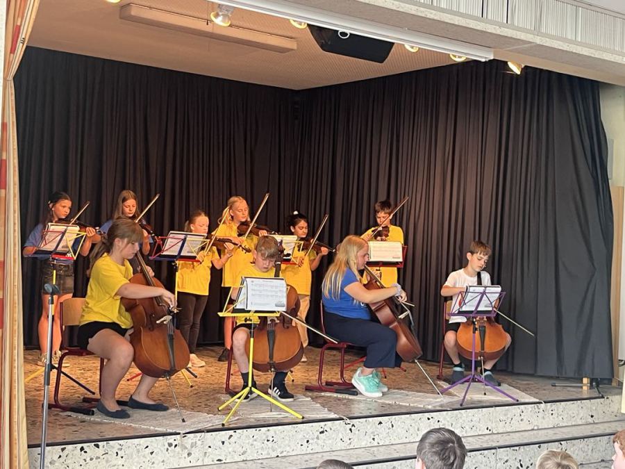 Am letzten Schultag verabschiedeten sich unsere Viertklässler/innen im Rahmen unserer traditionellen „Abschiedsbühne“ von ihren Lehrern und Mitschülern. Unsere Streicher AG zeigte ihr Können, es wurden Lieder gesungen und Sketche vorgetragen, Geschenke überreicht und auch so manche Träne vergossen.