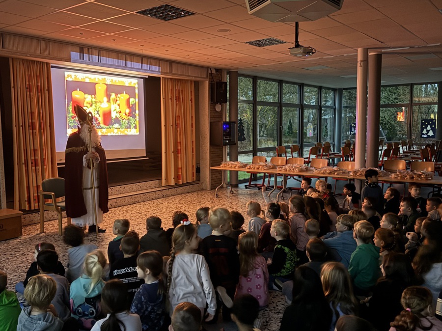 Am Donnerstag, den 6. November, fand wieder unser Laternenfest statt. Viele Kinder, Eltern und Großeltern waren unserer Einladung gefolgt und genossen zusammen das Fest. In stimmungsvoller Atmosphäre wurden gemeinsam Lieder gesungen, es gab Getränke und kleine Snacks. In der Aula wurde ein von der Klasse 4c erstellter Kurzfilm zum Thema St. Martin gezeigt und als Überraschung trat wieder die Gruppe "Incendio" mit ihrer Feuershow auf.